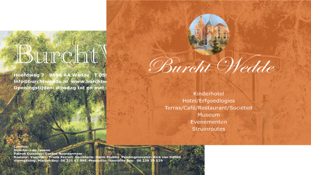 burcht wedde Date: januari 16, 2013Author: marjanbey Categorie: brochures, burcht wedde, concepten Tags: art director, beij, bey, burcht, marjan, wedde Berichtnavigatie ← te paard! siebel actie → mooi boekje voor mooi initiatief. 2012. samen met zus henriette, printproducer/projectmanager.